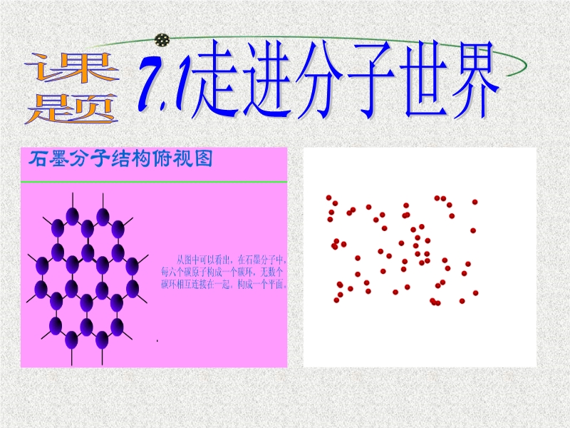 【内容简介】苏科版《7.1走进分子世界》ppt+视频课件,ppt课件由48张幻灯片组成,内容丰富,图文并茂。另附相关3个视频课件和4个flash动画素材。