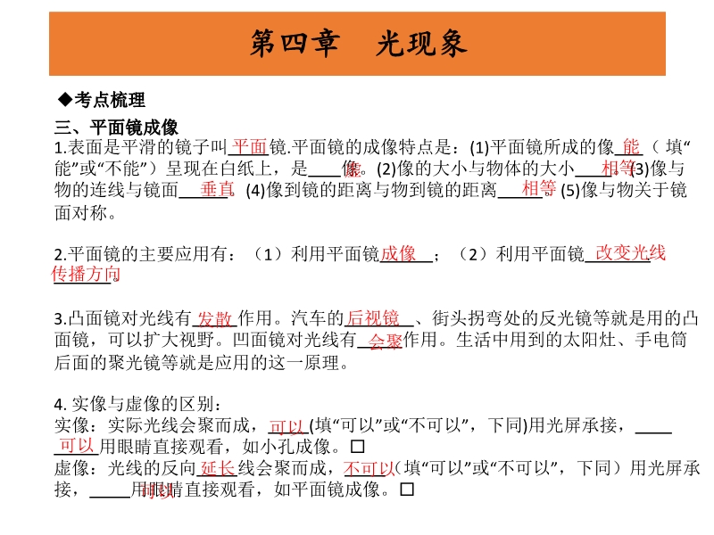 广东省2015中考物理冲刺复习课件:《第4章+光现象》PPT课件