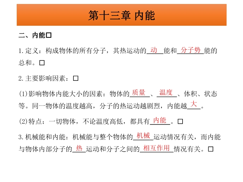 - 812025-2026学年人教版物理九年级全一册ppt课件:13.3 内能