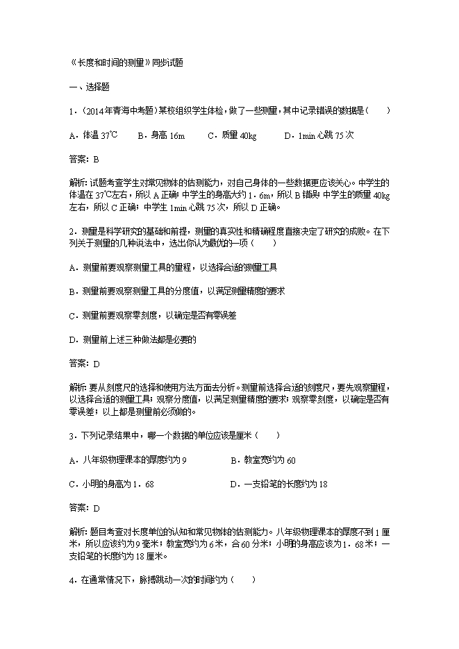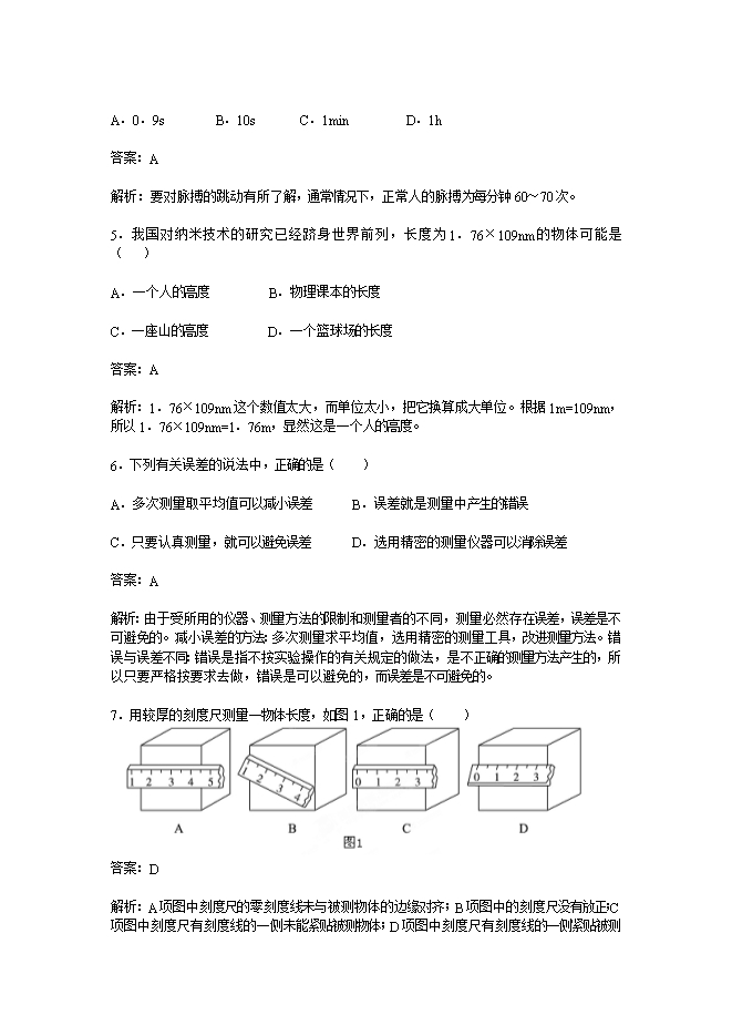 人教版《1.1长度和时间的测量》PPT+教案+同步测试