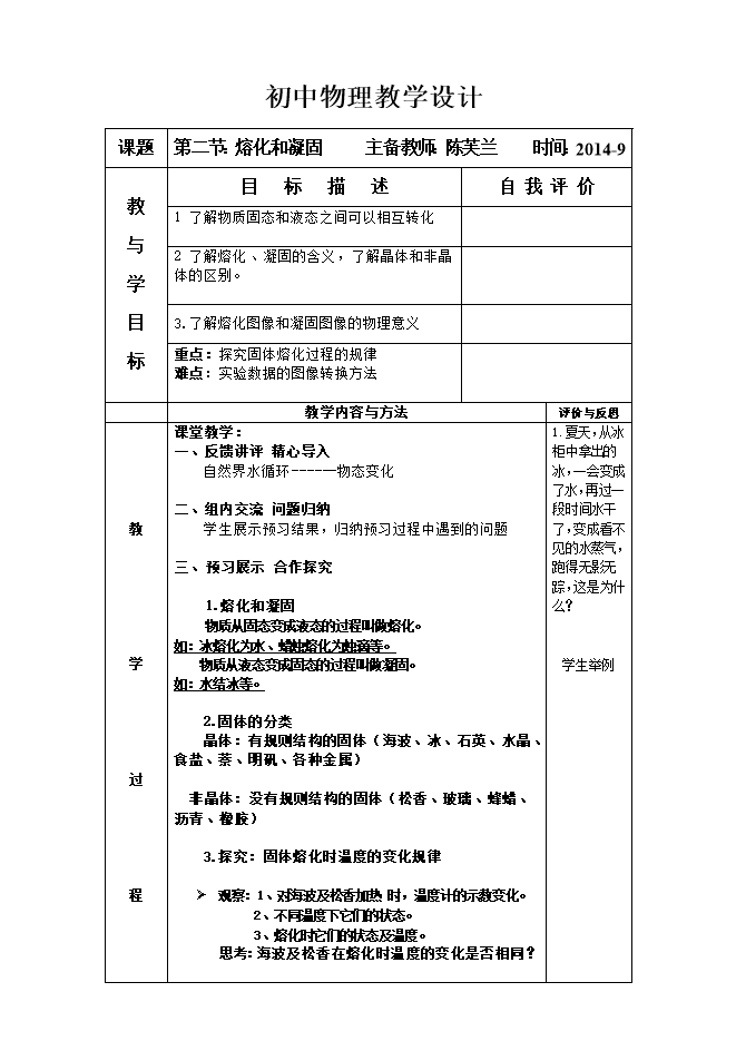 教科版《5.2熔化和凝固》PPT课件+教案(青海 陈芙兰)