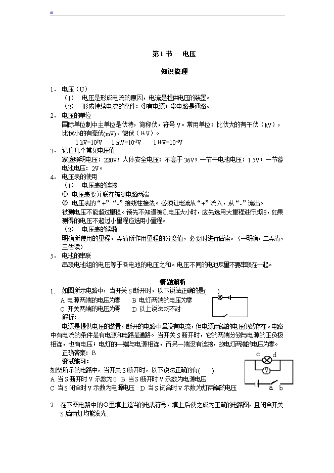 - 53第20讲 电压 电阻--2025年甘肃中考物理一轮专题复习分点练(原卷版和解析版)