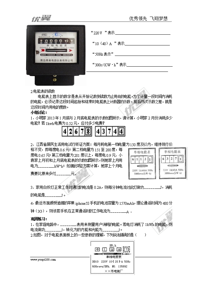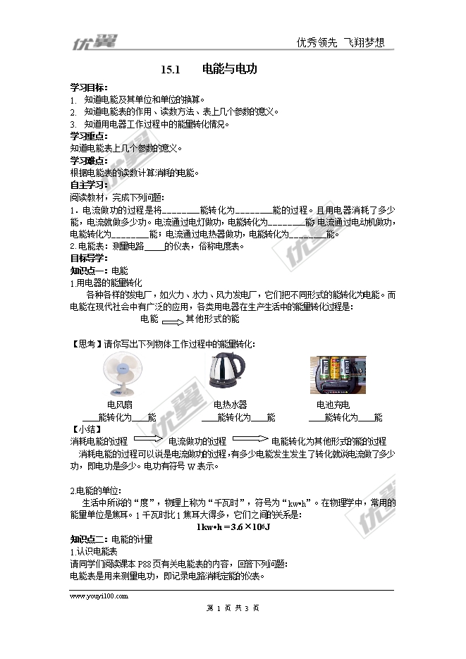 【学练优作业课件】:沪粤版《15.1电能与电功》PPT+教案+作业