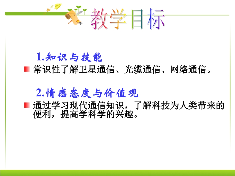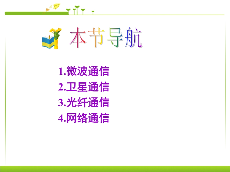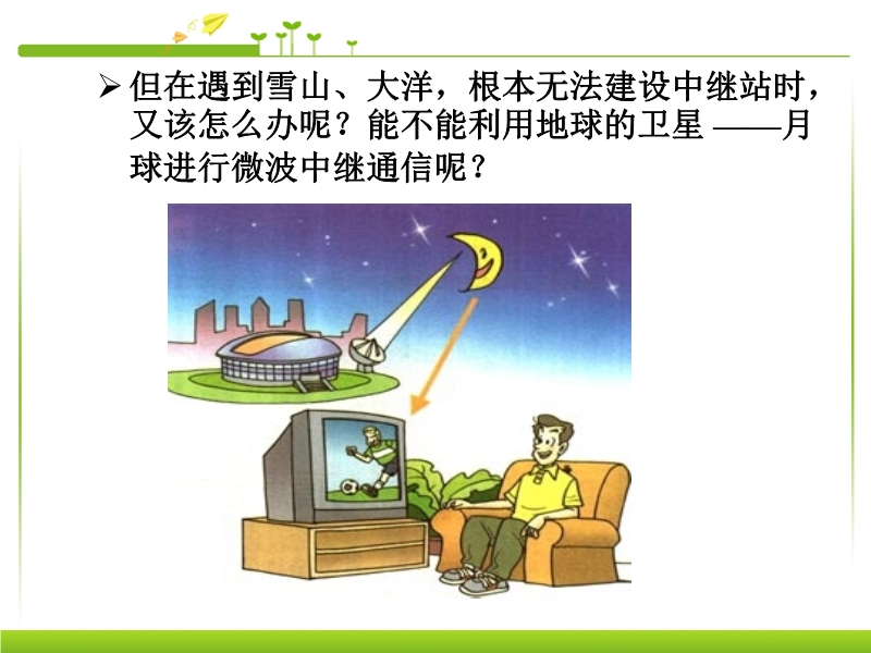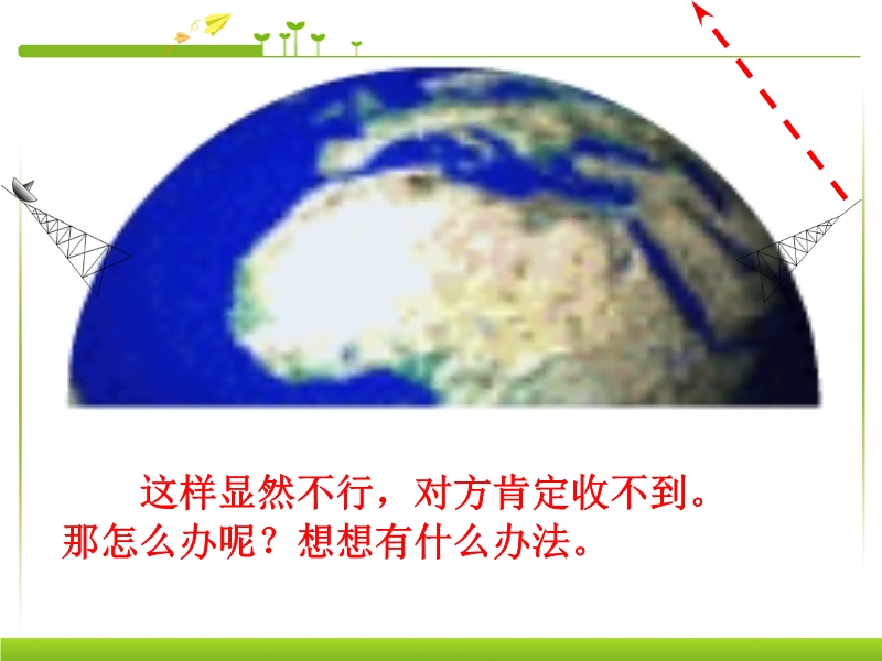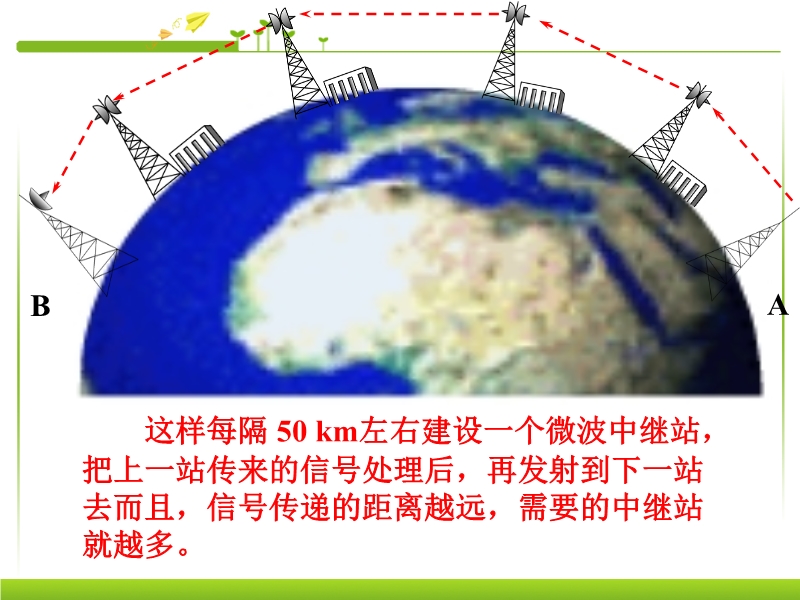 【内容简介】人教版:《21.4越来越宽的信息之路》ppt课件,共有32张幻灯片。课件主要展示了现代人类传递信息的方式,引导学生学习了当前人类传递信息的四大方式:微波、光纤、卫星、网络等,展示了它们系统的基本组成,学习了网络通信等