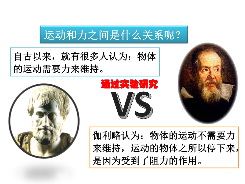 【内容简介】人教版:《8.1牛顿第一定律》PPT课件,共有28张幻灯片。课件首先展示了亚里士多德和伽利略的两种关于力与运动的观点,然后引导学生设计实验进行探究,并且在实验结论的基础上引导学生进行总结和推理,让学生深入地认识了物体不受力作用时将怎样运动,最后总结了牛顿第一定律,并对其内容作了详细地解读。课件还引导学生认识了惯性现象。