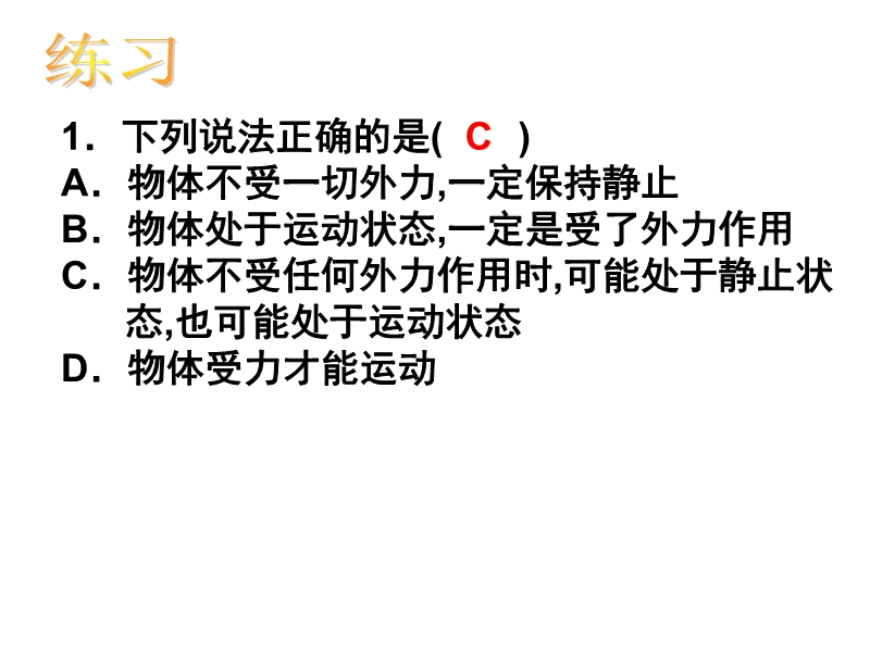 - 下一份课件:人教版《8.1牛顿第一定律》PPT课件