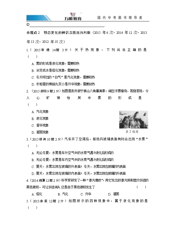 【内容简介】【2016湖南中考试题研究】考点研究课件+word:第十一章 物态变化(2份打包),内含中考复习课件和湖南近4年中考真题精编(2012~2015年),课件为ppt制作,分中考试题精编、考点梳理、图说物理、重难点突破四个部分;课件并非图片版,而是真实word版,用户可以根据自已需要增删编辑;word版中考真题精编配图形清晰、配有详细解析。
