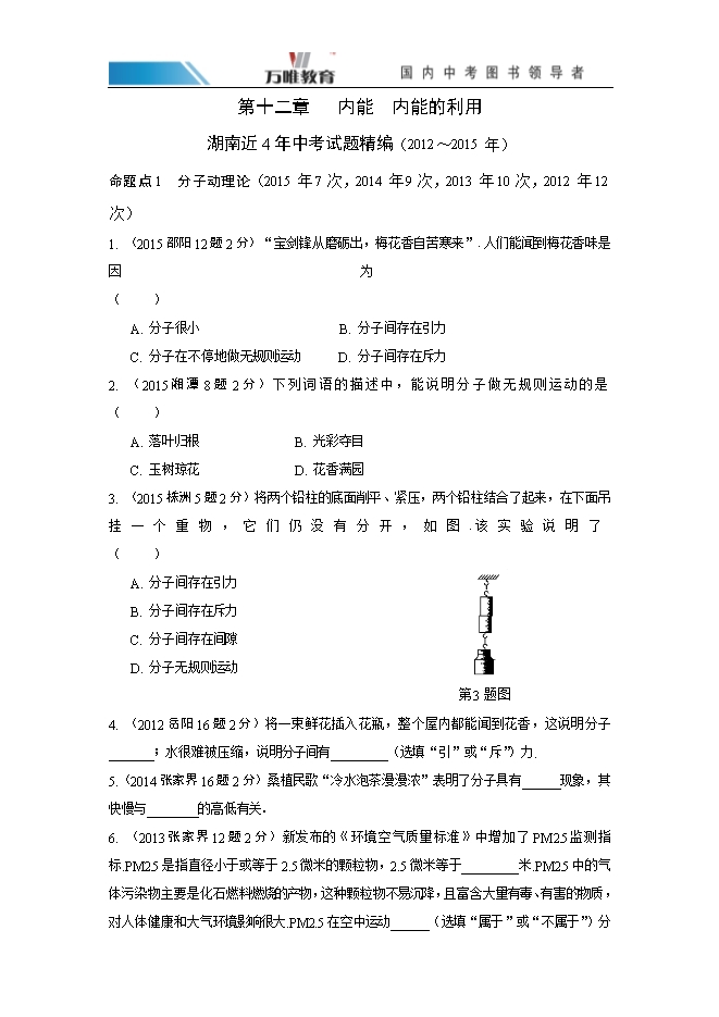 【内容简介】【2016湖南中考试题研究】考点研究课件+word:第十二章 内能 内能的利用(2份打包),内含中考复习课件和湖南近4年中考真题精编(2012~2015年),课件为ppt制作,分中考试题精编、考点梳理、图说物理、重难点突破四个部分;课件并非图片版,而是真实word版,用户可以根据自已需要增删编辑;word版中考真题精编配图形清晰、配有详细解析。