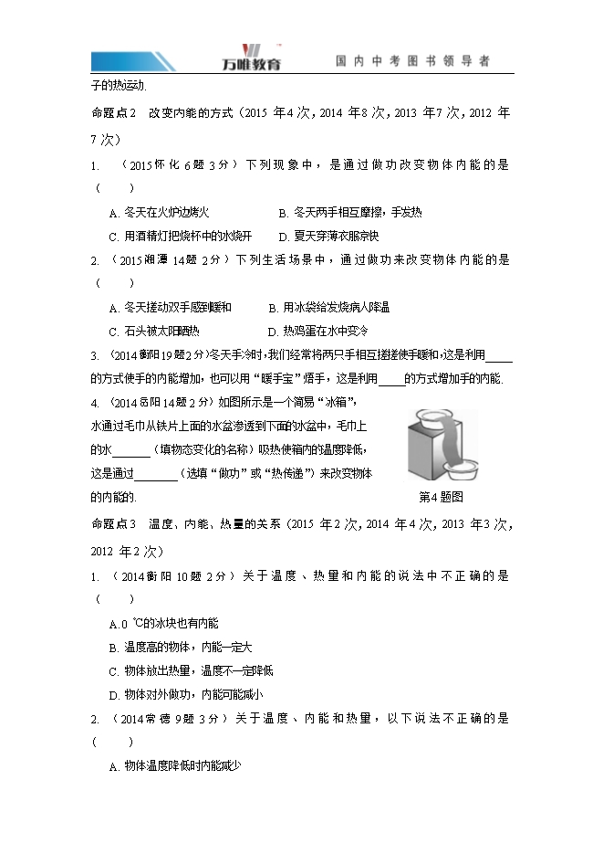 【2016湖南中考试题研究】考点研究课件+word:第十二章 内能 内能的利用(2份打包)
