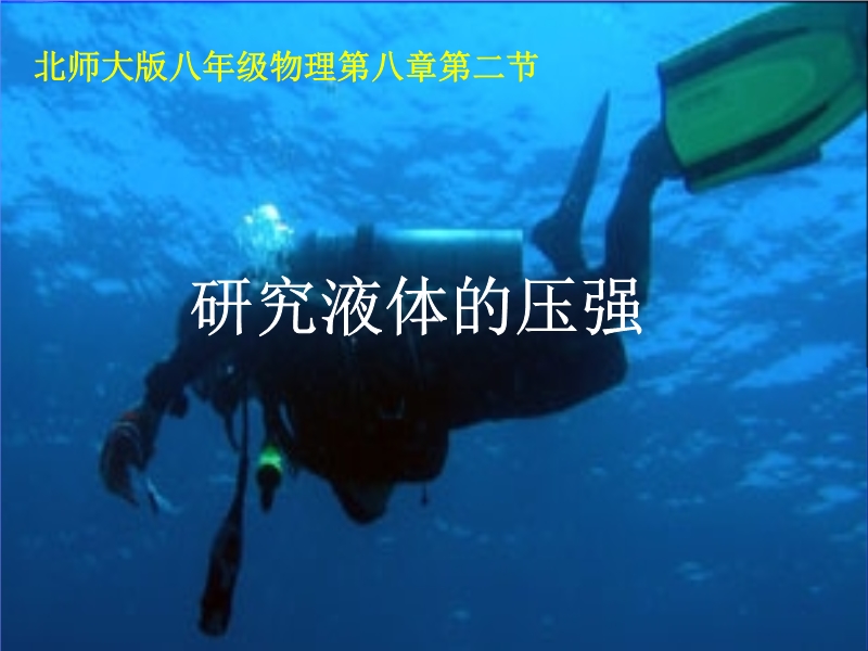 【内容简介】北师大版:《8.2 液体的压强》课件PPT,共有32张幻灯片。课件主要引导学生探究了液体压强的特点和规律,引导学生从理论上推导了液体压强的计算公式等。课件精选了有关液体压强的计算习题。