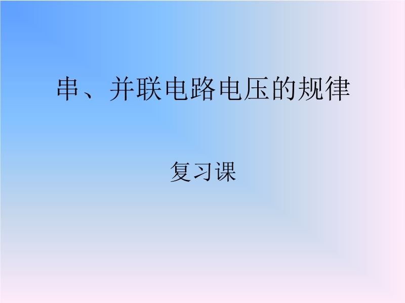 【内容简介】河南省开封县西姜寨乡第一初级中学(人教版):16.2串、并联电路电压的规律(复习课)(ppt课件),课件由28张幻灯片组成。课件简洁实用。