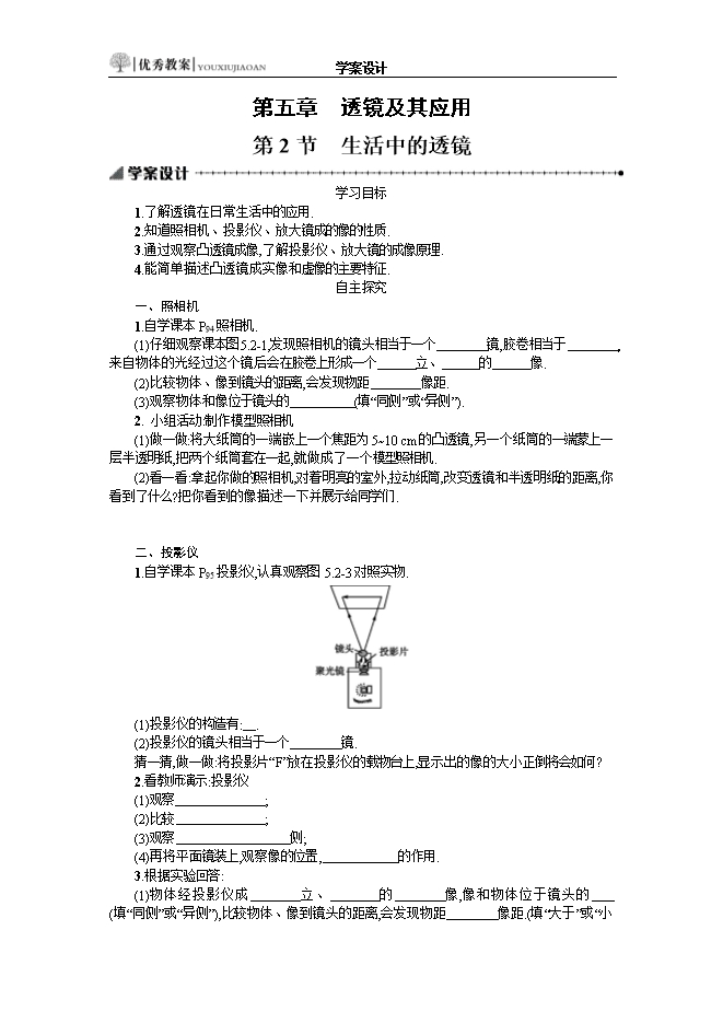 人教版:《5.2生活中的透镜》ppt课件+学案(免费)
