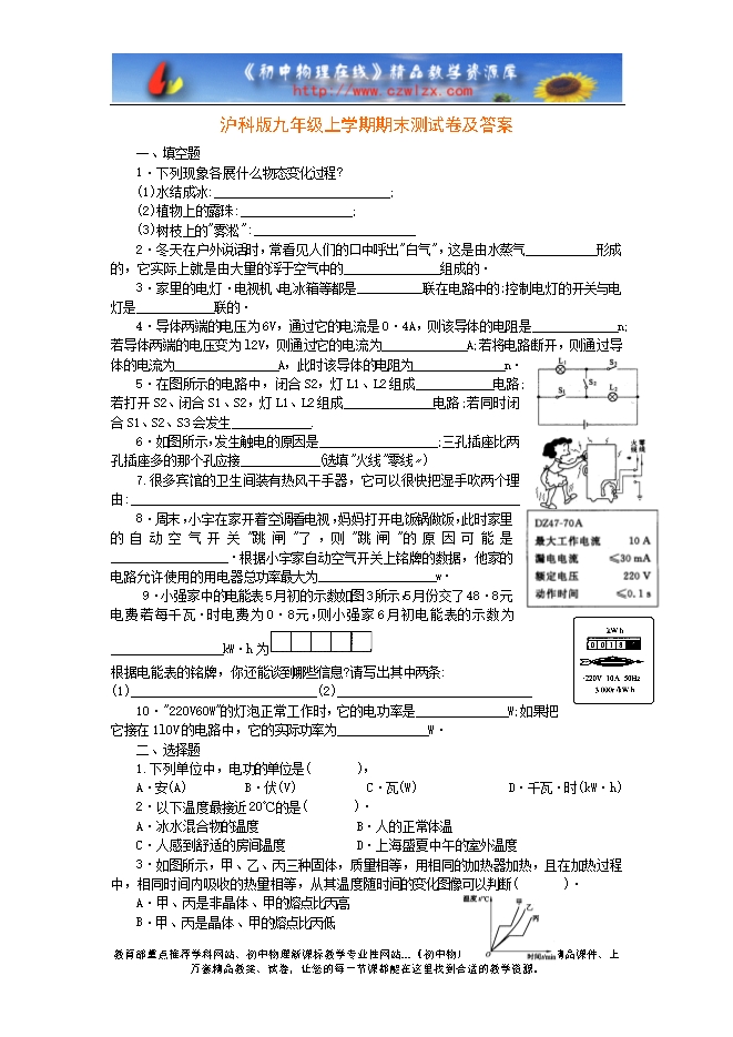 - 下一份试卷:沪科版九年级下学期期末测试卷及答案