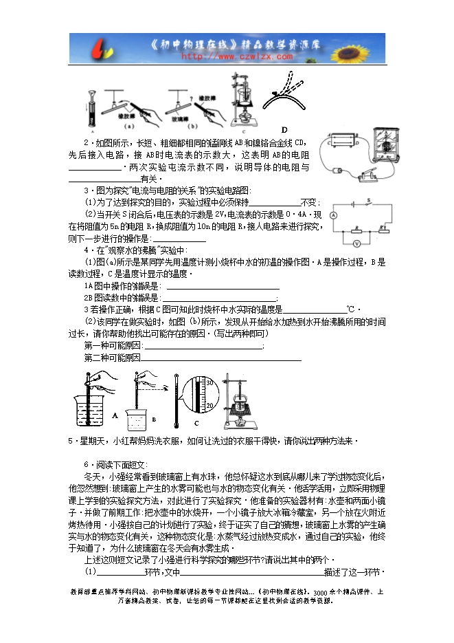 7.很多宾馆的卫生间装有热风干手器,它可以很快把湿手吹两个理由:____________________________________________________________