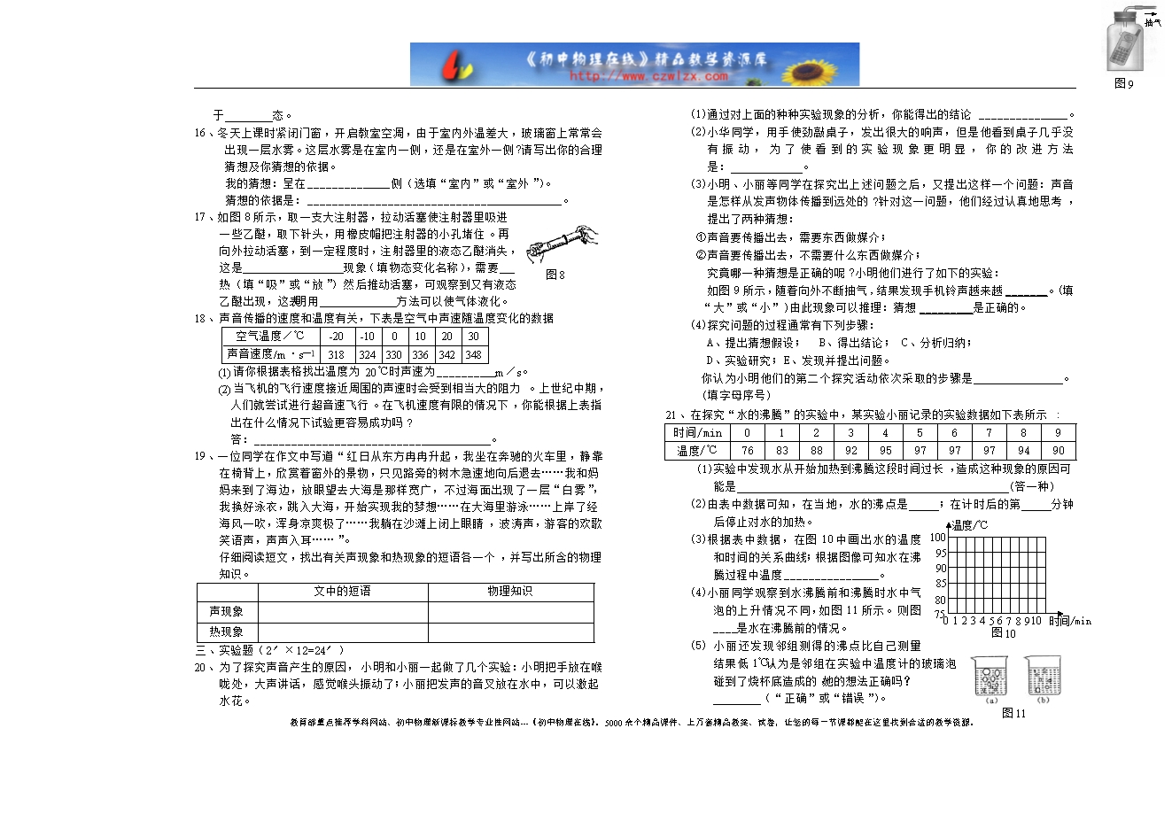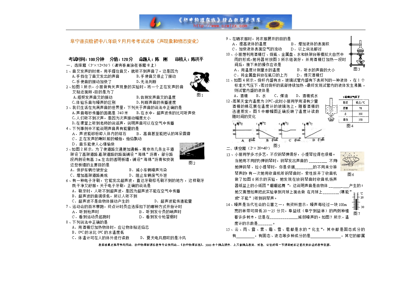 阜宁实验初中八年级9月月考试卷(声现象和物态变化)