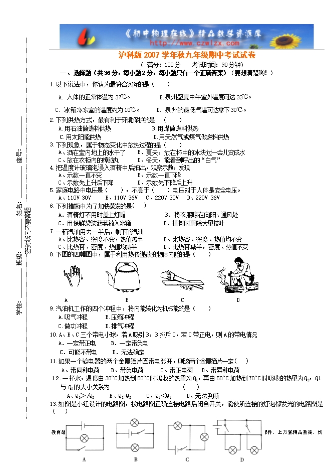 - 下一份试卷:连城县07-08上期中九年级试卷