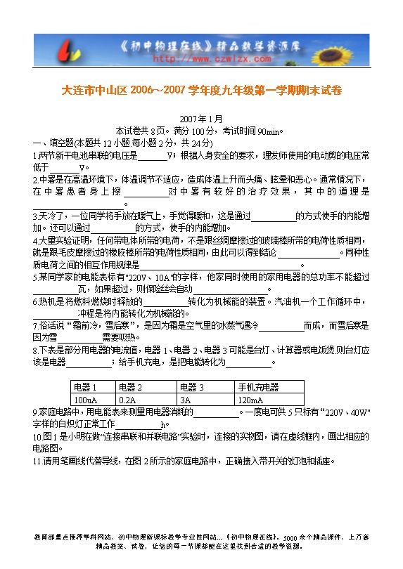 大连市中山区06-07九上期末试卷及答案