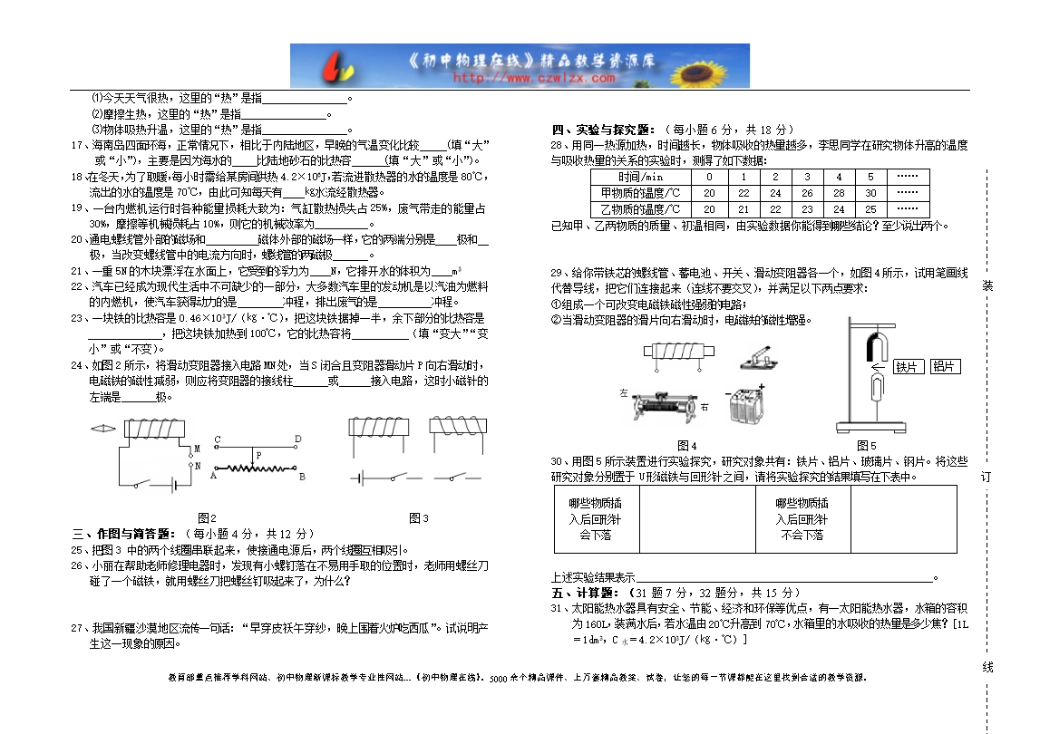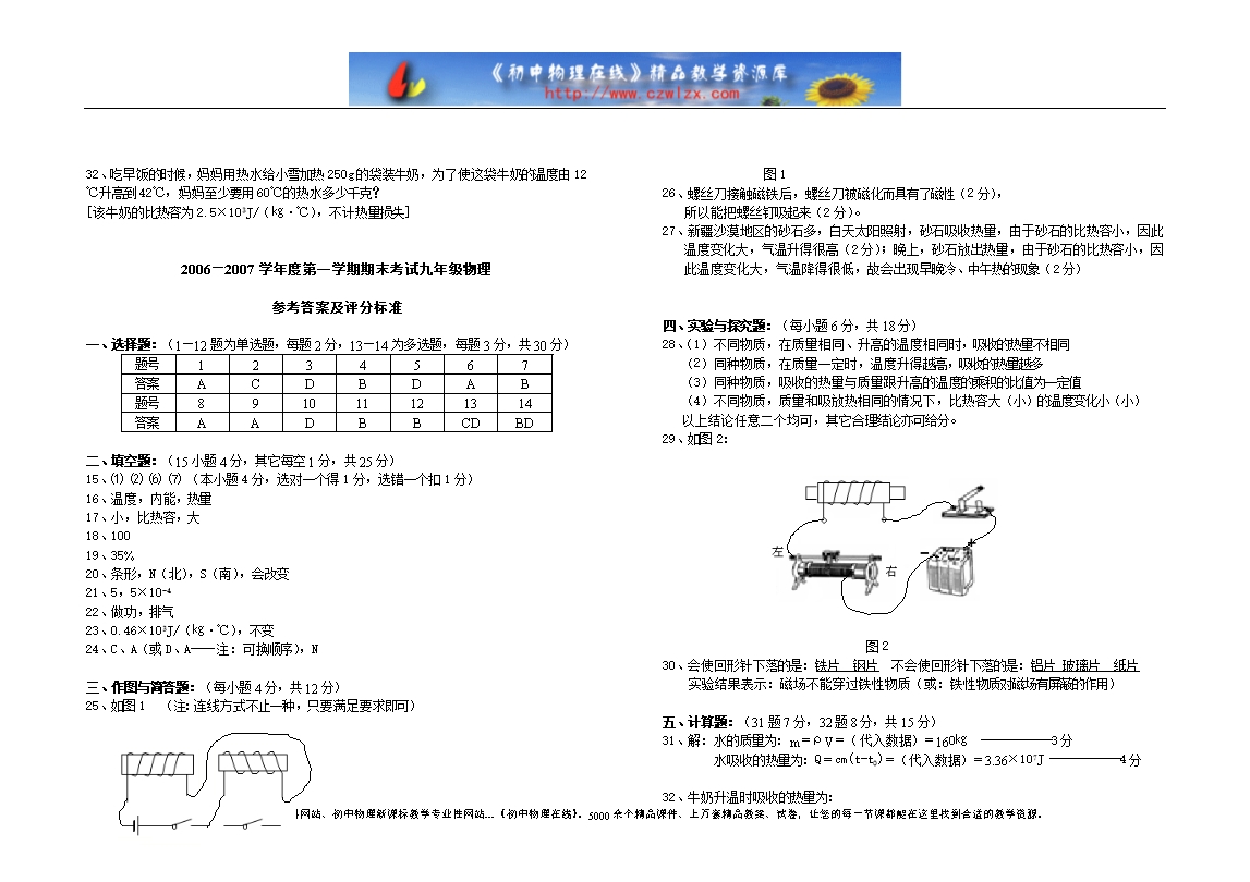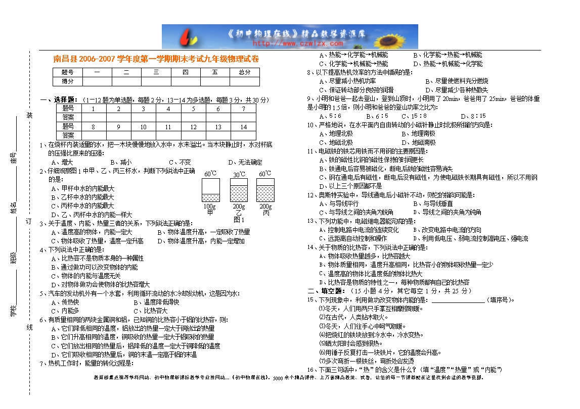 南昌县06-07上期末考试九年级物理试卷