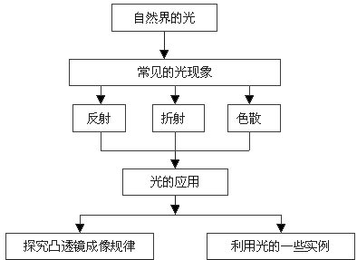 本章是以光的传播特点及其应用和白光的组成两个主题向学生展示了一个多彩的光世界。在该章内容的安排时,根据学生的认识能力和特点,先利用简单的光现象引发出物理问题——光是怎样传播的?而后,通过实验探究,归纳、总结出光的直线传播特点、光的反射规律和平面镜成像特点以及光的折射规律。在学习完光的色散后,要求学生通过科学探究——凸透镜成像规律,知道凸透镜成像规律在生活、生产和现代高科技领域中的广泛应用。为了让学生有更多的机会感受研究物理的过程和方法,探究和实验环节基本上贯穿本章各节。每一节的编写也都采用从生活走向物理、从物理走向社会的思路。根据教材的整体安排和本章具体内容,本章在科学探究方面要求学生经历制定计划与设计实验的过程,了解关于制定探究计划的意义和方法。同时,教材中安排了大量的课外活动内容和一些新科技知识,目的是让学生通过各种活动感受科技的力量、热爱科技、接近科技。