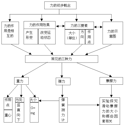 根据课程标准,本章在“知识与技能方面”,是让学生“了解重力、弹力和摩擦力。通过常见的事例或课堂演示认识力的作用效果。能使用示意图描述力。会测量力的大小。”在探究能力培养和探究过程体验方面,是通过对影响滑动摩擦力大小的各种因素的实验探究,突出“猜想与假设”这个环节,同时介绍在探究过程中“变量控制”的意义和方法。在学习过程中特别是在“交流与讨论”、“实验探究”过程中,渗透以实事求是,尊重自然规律,乐于参与科学实践(观察、实验制作、调查等)为主要特征的科学态度、科学精神,激发学生将自己见解公开并与他人交流的愿望,增强学生与同伴协同、合作的能力。