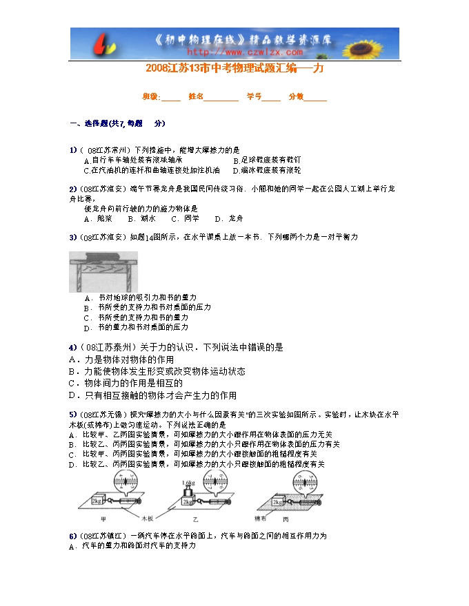 - 下一份试卷:2008江苏13市中考物理试题汇编--力与运动