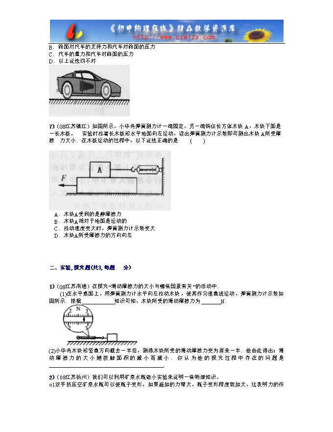 6)(08江苏镇江)一辆汽车停在水平路面上,汽车与路面之间的相互作用力为