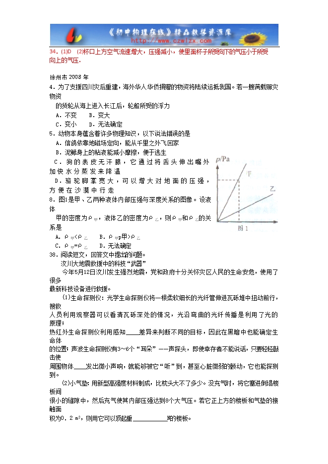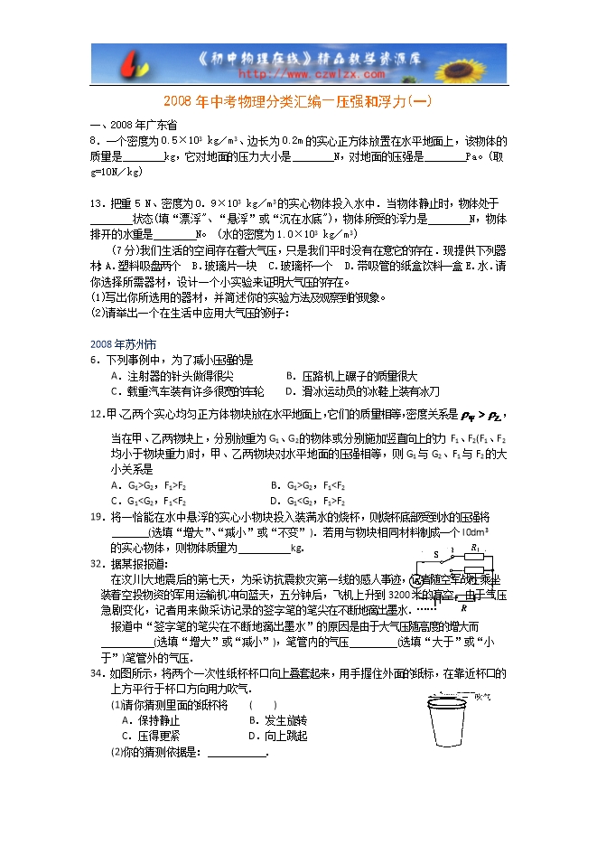 - 下一份试卷:2008年中考物理分类汇编—压强和浮力(二)