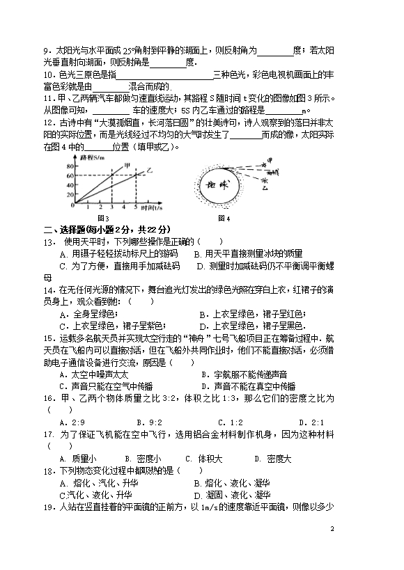 2.把一支蜡烛点然一会儿后,这支蜡烛的质量将 ,密度将 。(选填“变大”﹑“变小”或“不变” )