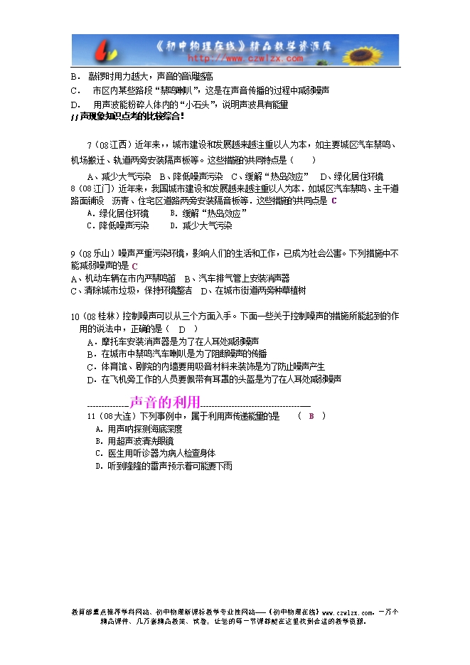 - 下一份试卷:2008年中考物理试题分类汇编—声现象综合