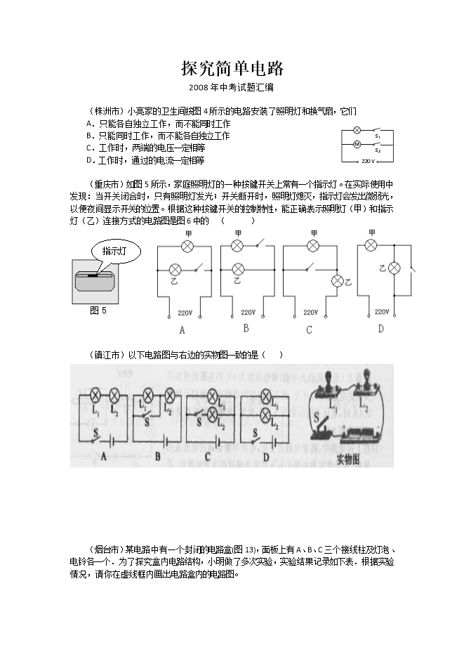 08中考试题汇编——探究简单电路