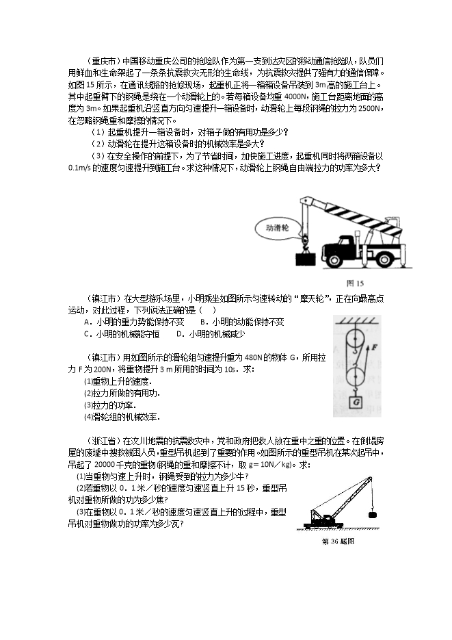 - 562025年中考物理基础知识复习课件:第11讲 功 功率 机械效率 机械能