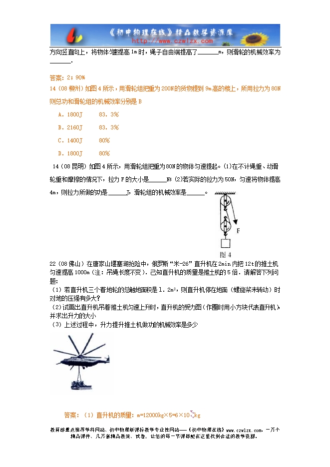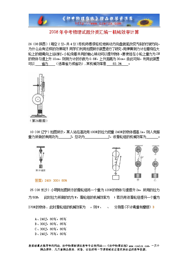 2008年中考物理试题分类汇编—机械效率计算