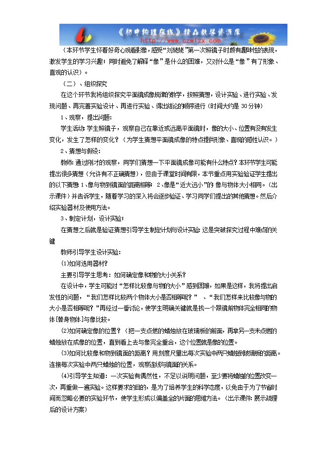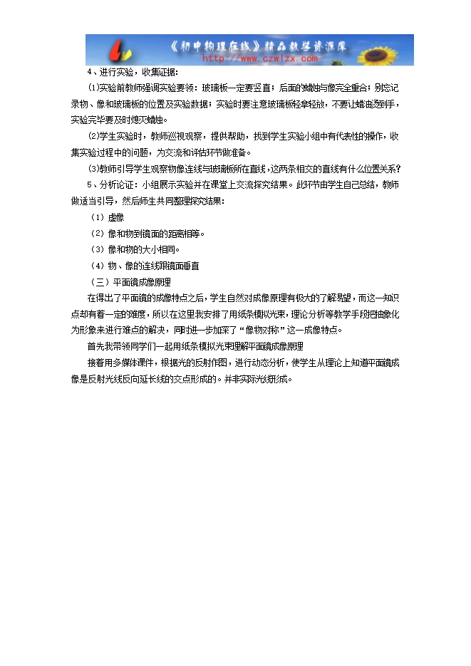 通过“平面镜成像特点”的探究过程,进一步学习实验探究的基本思路和方法。