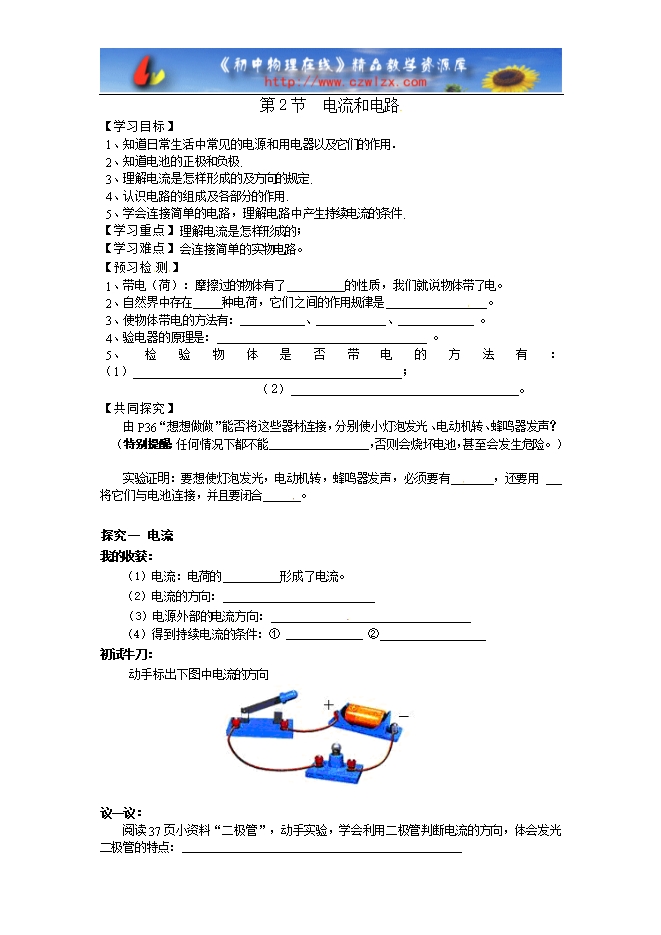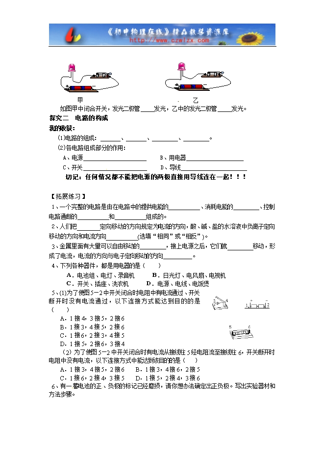 、学会连接简单的电路,理解电路中产生持续电流的条件
