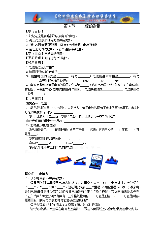 【学练优】人教版九年级物理学案:15.4电流的测量