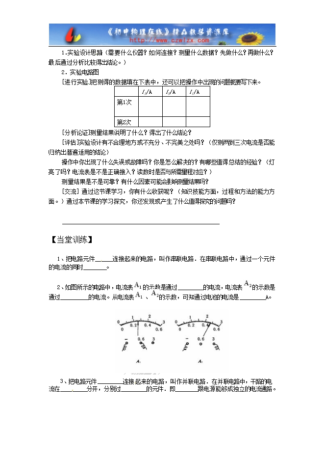 [猜想或假设]你认为串联电路中各点电流可能有怎样 的关系?(要有猜想依据)