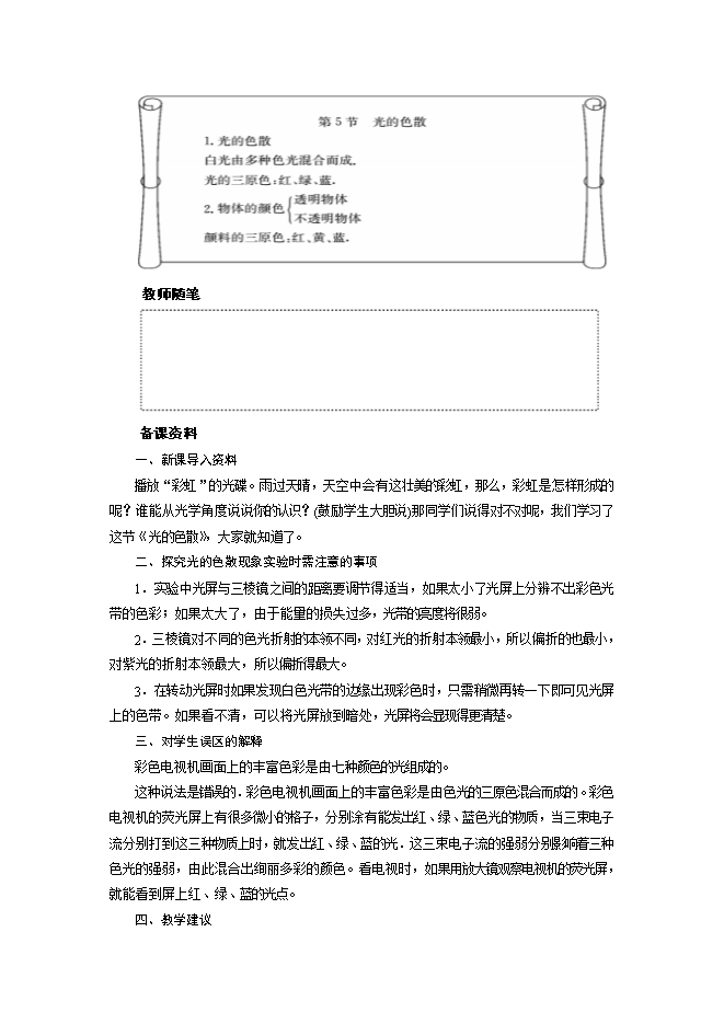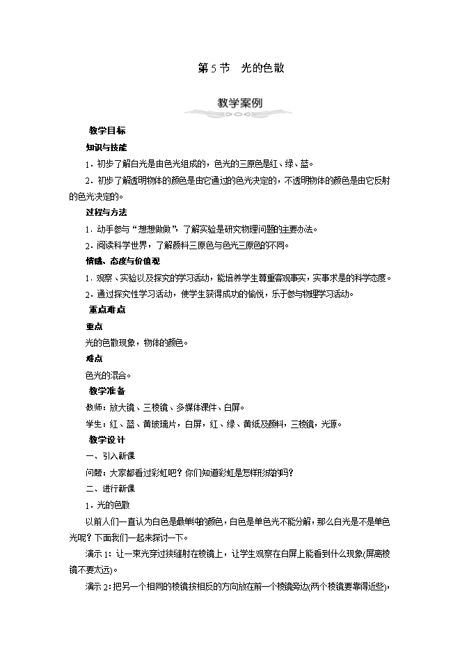 (2)白光不是单色的,而是由各种色光混合而成的。