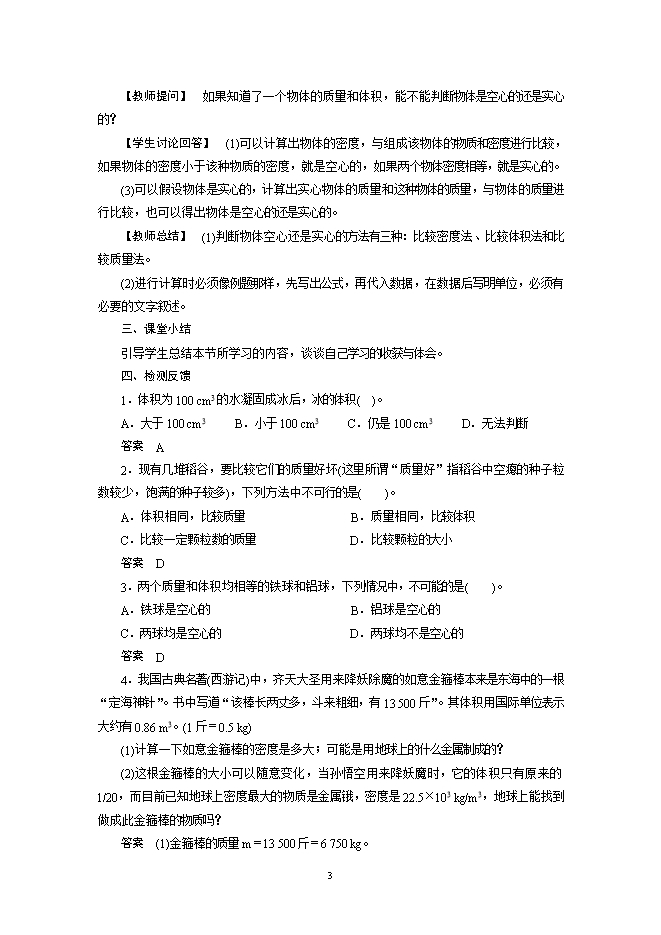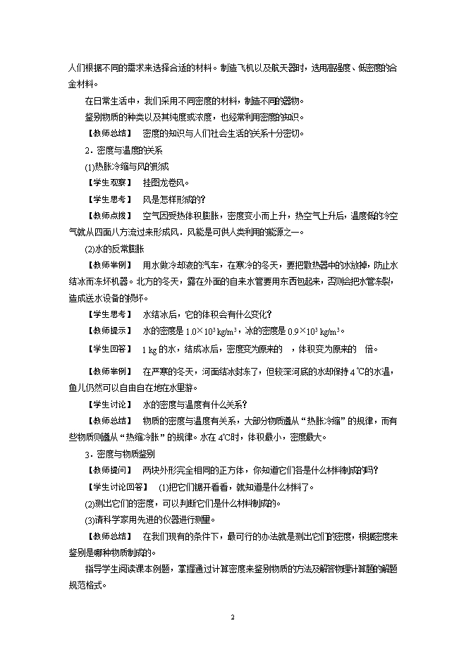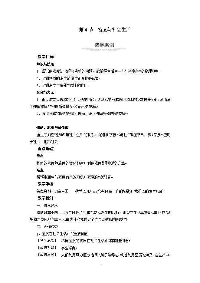 【教师总结】 密度的知识与人们社会生活的关系十分密切。