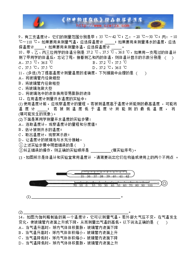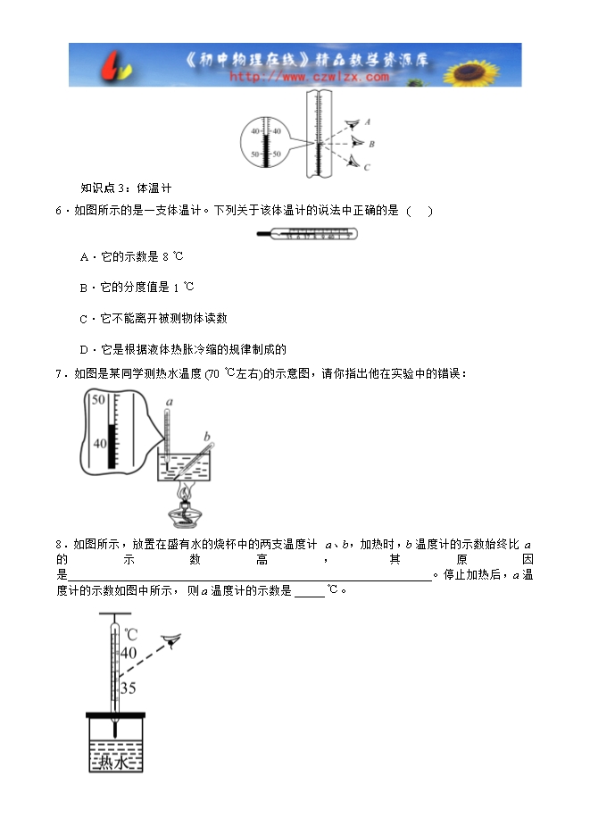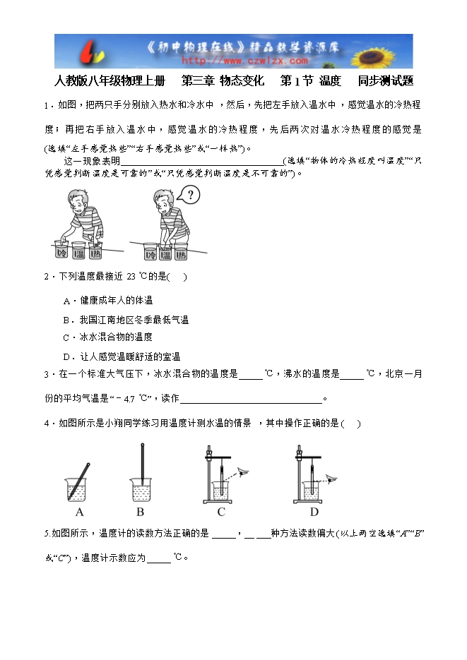 2017年秋人教版八年级物理上册同步测试卷《3.1温度》(含答案)