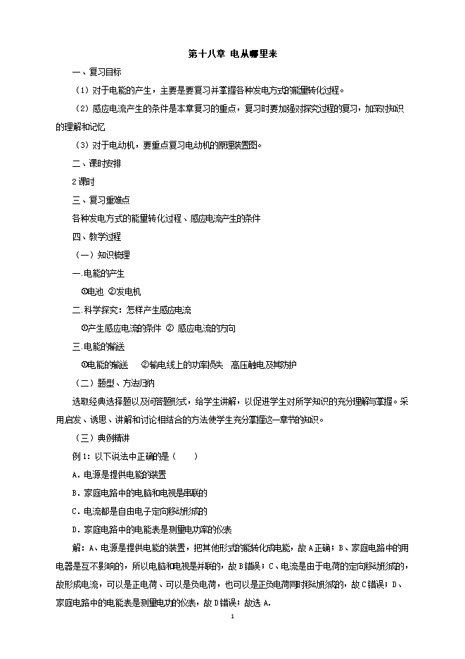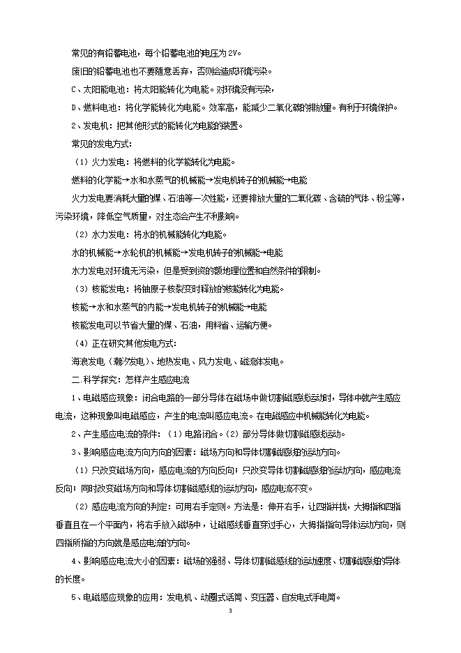 (1)对于电能的产生,主要是要复习并掌握各种发电方式的能量转化过程。