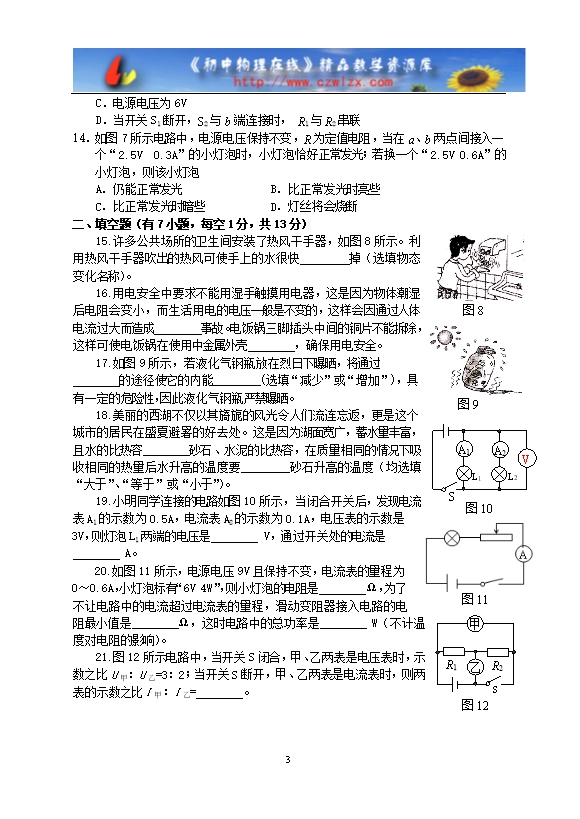 - 下一份试卷:沪科版09-10学年度九年级第一学期期末物理复习卷及答案