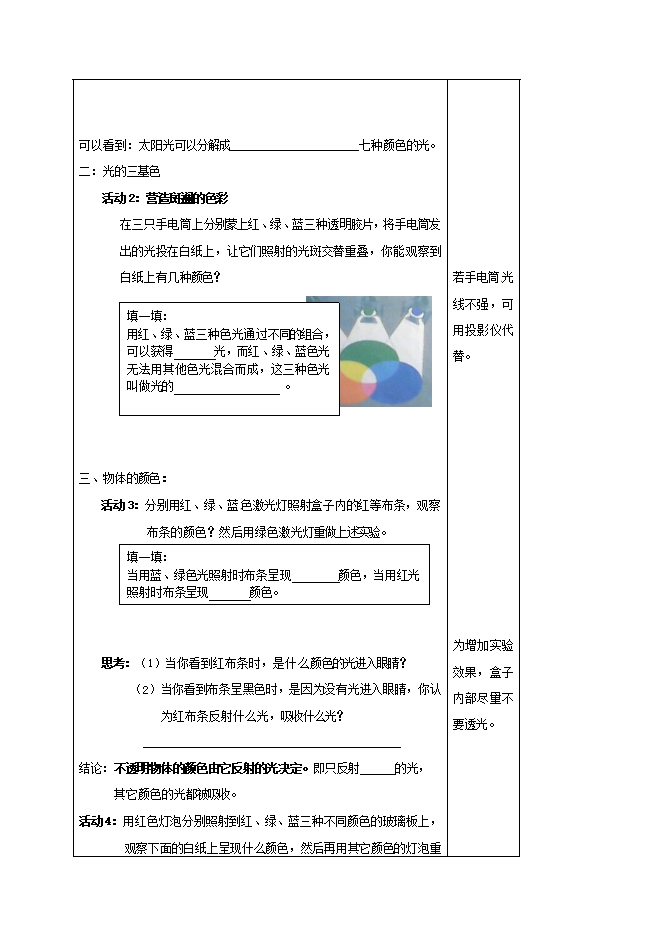 知道白光是色光组成的,知道色光的三原色与颜料的三原色
