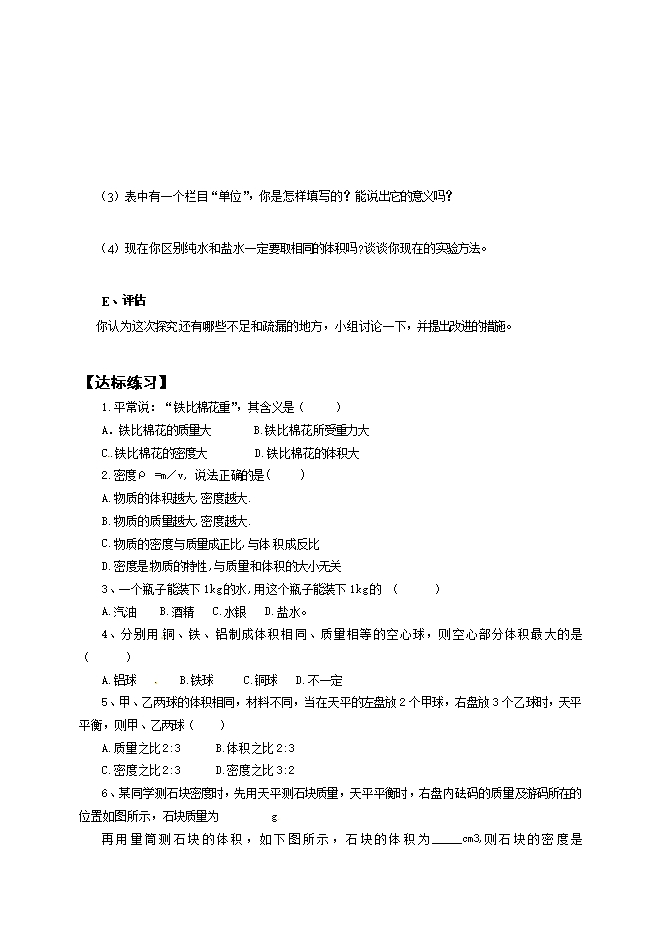 山东省郯城县红花镇初级中学八年级物理:5.3科学探究:物质的密度 教案+学案+课件+练习 (5份打包)