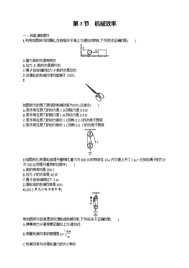 2018春人教版八年级物理下册同步精练:12.3机械效率(附解析)