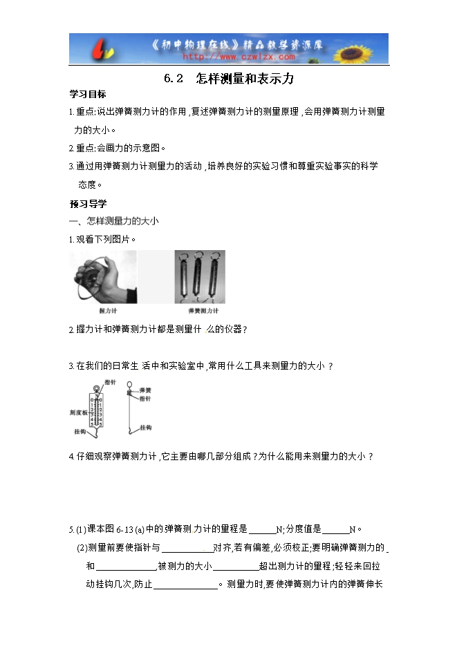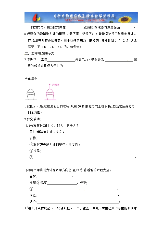 沪粤版八年级物理下册导学案:6.2 怎样测量和表示力(无答案)