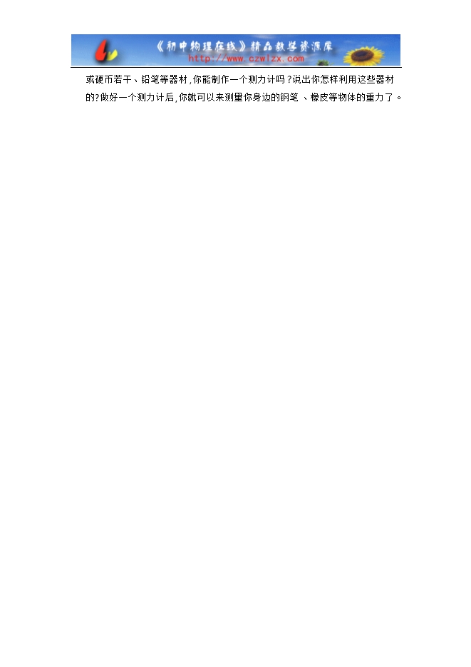 观察你的弹簧测力计的量程、分度值并记录下来。看看指针是否与零刻度线对齐