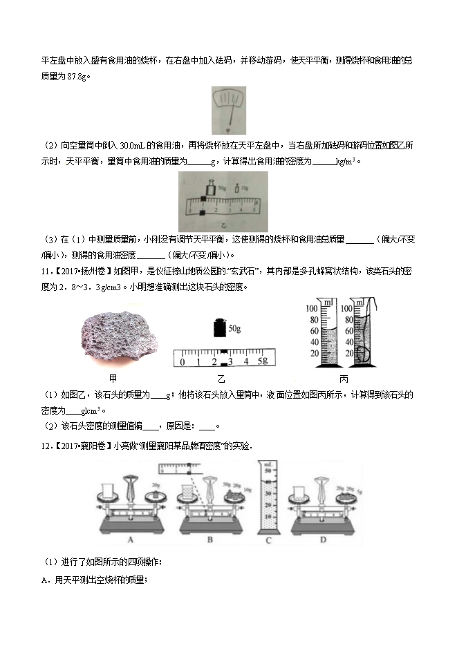 【内容简介】1.【2017•连云港卷】有四个容量均为200ml的瓶子,分别装满酱油、纯水、植物油和酒精,那么装的质量最多的是(ρ酱油>ρ纯水>ρ植物油>ρ酒精)( )