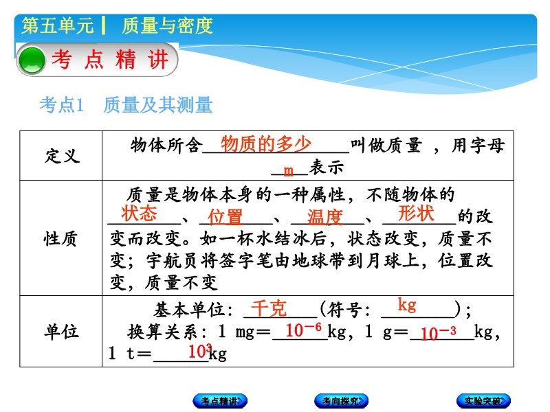 2018届中考物理复习《第五单元 质量与密度 第7课时 质量和密度》ppt课件+word专项训练