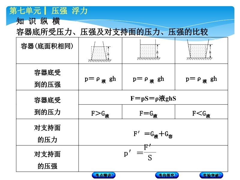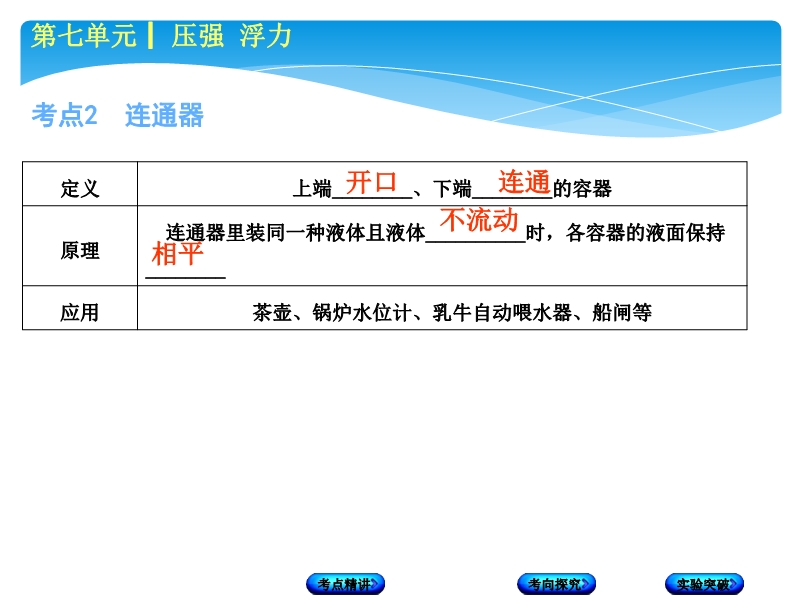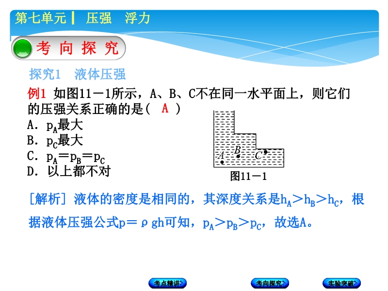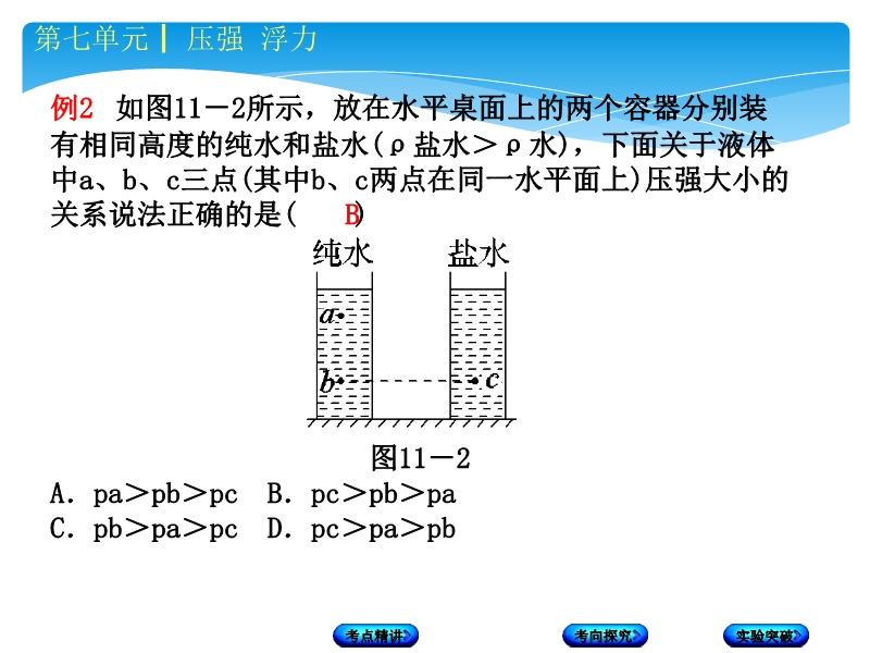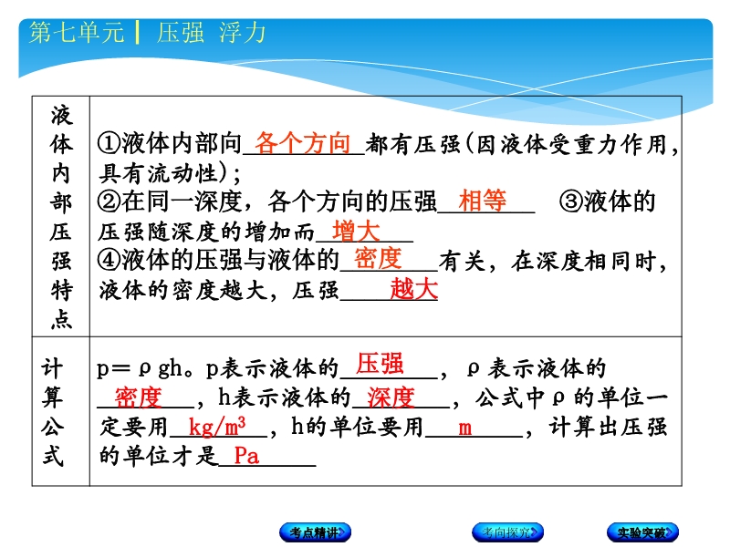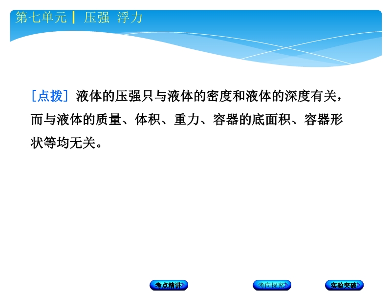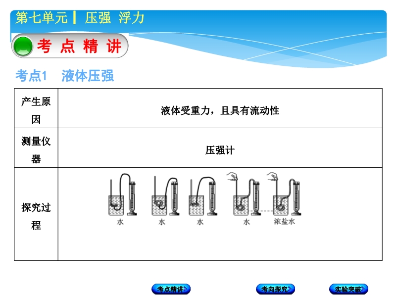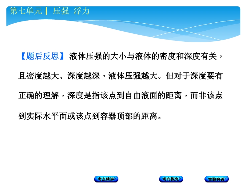 2018届中考物理复习《第七单元 压强浮力 第11课时 液体压强》ppt课件+word专项训练