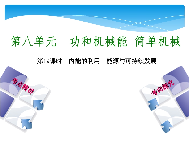【内容简介】2018届中考物理复习《第八单元 功和机械能 简单机械 第19课时内能的利用》ppt课件+word专项训练.rar共有26张幻灯片,主要针对内能、能源的开发与利用相关知识进行复习,分为知识梳理、典型例题和两个部分,并配有专项练习,适合各省市复习通用。